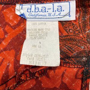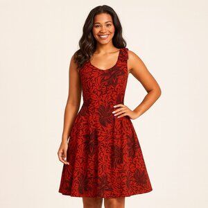 Timeless and feminine, this DBA-LA California fit-and-flare dress blends retro charm with a warm, earthy aesthetic. Made from 100% cotton, it features a rust-colored base with black floral print, perfect for both everyday wear and special occasions.