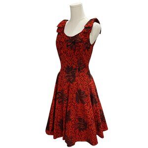 Vintage Rust Black Floral Cotton Fit And Flare Dress Cottagecore Retro Boho