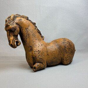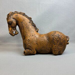 Vintage Rustic Brown Bitossi-Style Sitting Horse Statue Heavy Decor Piece 18" L