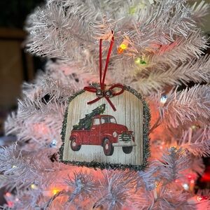 Vintage Rustic Christmas Red Truck Wooden Bell Christmas Ornament