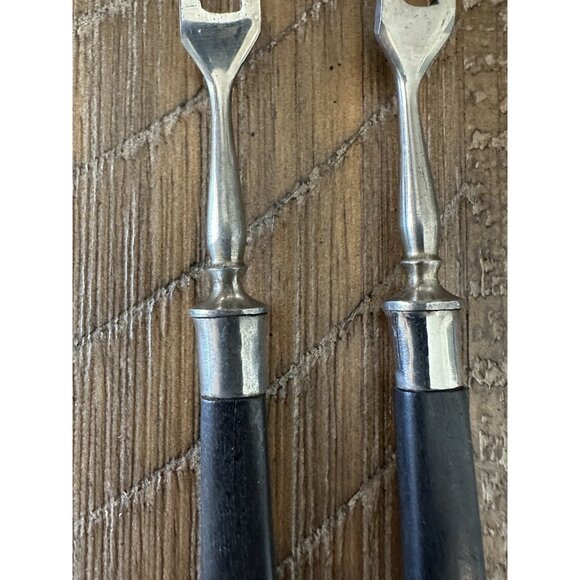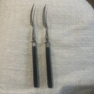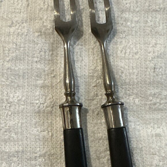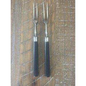Vintage Rustic Farmhouse Carving Forks Pair 7 1/8” Black Handle Kitchen Decor