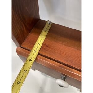 This vintage pine wood bookshelf boasts a rustic farmhouse style that will add character to any room. With four shelves, it's perfect for displaying CDs, books, plants, and other collectibles. Measuring 35.5 inches in height, 8 inches in length, and 9 inches in width, this bookcase is suitable for a variety of spaces.