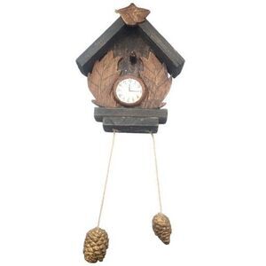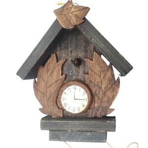 Vintage Rustic Folk Art Cuckoo Clock Christmas Ornament Wood Autumn Winter 9"