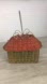 Cute red and green vintage house shaped wicker basket.