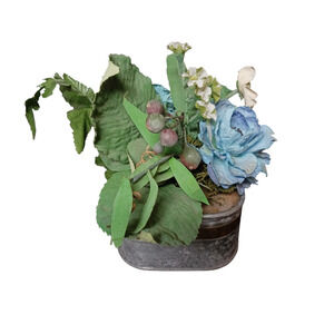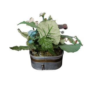 Vintage Rustic Metal Music Box Floral Arrangement Patina Distressed Home Decor