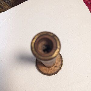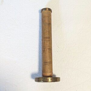 Vintage Rustic Primitive Candlestick Wood Spool Bobbin Holder Taper Industrial Textile Brass Rim