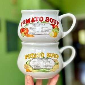 Vintage Rustic Retro Farmhouse Cottagecore Soup Recipe Mug Set Potato & Tomato