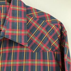 Vintage Rustler Blue Red Green Plaid XLong Tails Pearl Snap Western Shirt Top