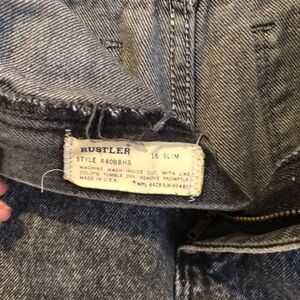 Super cute vintage rustler gray washed jeans, snap closure button. 16 slim