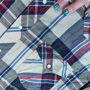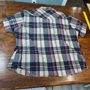 Vintage Rustler Men’s button down pearl buttons short sleeve size XXL cream red navy plaid