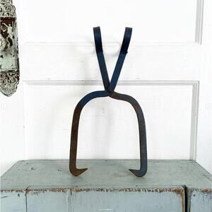 Vintage Rusty Metal Ice Block Tongs Blue Paint Industrial Farmhouse Salvage