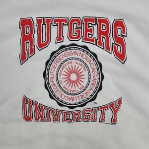 #VintageSweatshirt, #RutgersUniversity, #CollegeStyle, #WomensVintageClothing, #RetroCollegeFashion, #WhiteSweatshirt, #VintageRutgers, #XLStyle, #UniversityApparel, #CasualRetroLook.
