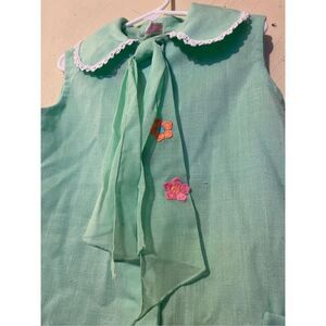 Beautiful vintage Ruth of Caroline embroidered floral green sleeveless dress there’s no size but it looks like a 56 the measurements are across chest 13” and full length 21”
