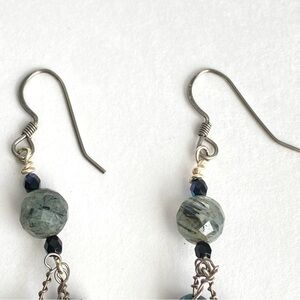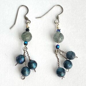 Vintage Rutilated Quartz Earrings Iridescent Peacock Blue Green Beaded Artisan Handmade
