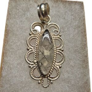 Vintage Rutilated Quartz Marquise Pendant 925 Sterling Silver Filigree