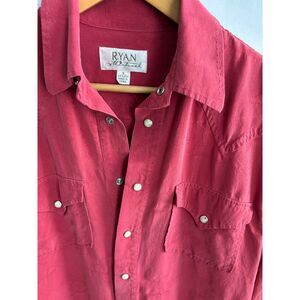 Vintage Ryan Michael Red Button Down Shirt 100% Silk Western Cowboy Snap Size S