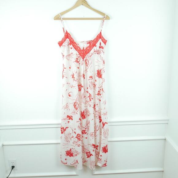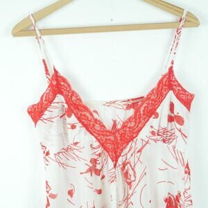 Vintage S Nightgown Slipdress Coquette Feminine Dainty Red Lace Floral 70s Glam