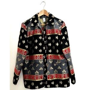 Vintage SAG HARBOR WOMEN'S TAPESTRY BROCADE JACKET FLEUR DE LIS PATTERN SZ 10