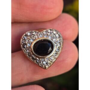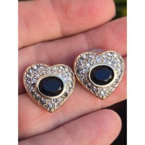 Vintage SAL Swarovski Clear & Black Crystal Gold Tone Heart Shaped Stud Earrings