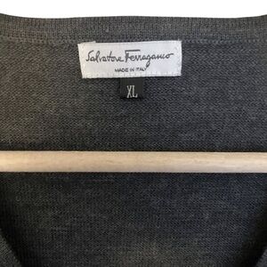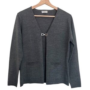 Vintage SALVATORE FERRAGAMO Wool Blend Cardigan Sweater Gancini Logo Gray