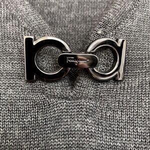 Vintage SALVATORE FERRAGAMO Wool Blend Sweater Gancini Logo Gray