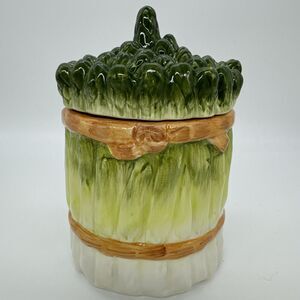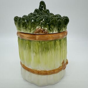 Vintage SAMWARE Made in China Ceramic ASPARAGUS SMALL canister/lid 1 of Set Of 3