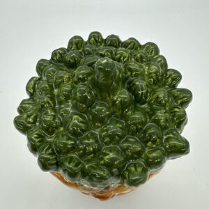This item is an original and comes from a set of three small canisters, each with a unique design, including a cucumber and a corn design. It is perfect for storing small items, such as spices or tea, and is a great gift for anyone who loves vintage or farmhouse style decor. Add a touch of whimsy to your kitchen with this adorable canister or add/complete your set!!!