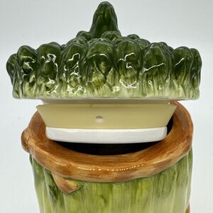 This vintage ceramic canister from SAMWARE is a charming addition to any kitchen or collection. It features a plunger style lid, with a beautiful asparagus pattern, and is made in China. The canister is small, measuring 4 inches in length and 6.25 inches in height, with one compartment and a free-standing mounting.