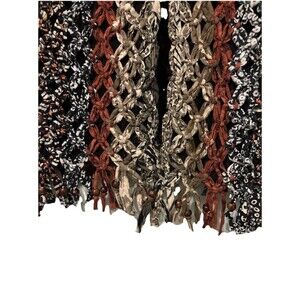 Vintage SANDY STARKMAN Open Jacket Lagenlook Boho Fringe Brown Red multicolor L