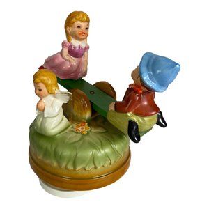 Vintage SANMYRO Music Box Made in Japan 7" x 5" Boy Girl See Saw Angel