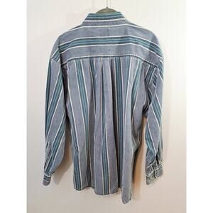 Vintage SANTANA Denim Shirt Mens Large Blue White Striped Durable 80s 90s Flaw