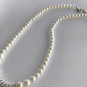Vintage faux Pearl graduated bead choker necklace with silver tone accent. Signed SAQ. In excellent condition. Measures 16” in length with chain extender.