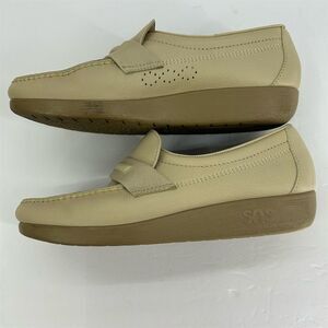 Keywords: SAS loafers, men's size 9, beige leather shoes, casual loafers, vintage men's shoes, comfortable loafers, medium width, USA made shoes, genuine leather loafers, men's casual footwear.