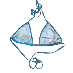 Vintage SC Bikini Top in blue, no padding, size small. Good condition with adjustable ties.