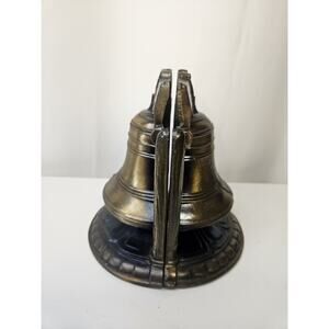 Vintage SCC 1974 Liberty Bell Bookends Brass 6" Tall Marked USA