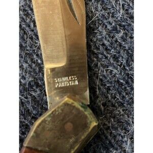 The Vintage Schrade ?? folding hunting knife is a classic piece of craftsmanship made in Pakistan. Featuring a 2.76 - 4 inch carbon steel clip point blade with a manual opening mechanism, this pocketknife is both practical and durable. The ambidextrous design, combined with the lockback feature, ensures a secure and reliable tool for everyday use. The brown handle, made of wood, adds a touch of vintage charm to this original collectible folding knife from Schrade.