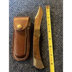 Vintage SCHRADE ? Made In Pakistan Folding Hunting Knife ~ w/ Sheath 🗡️