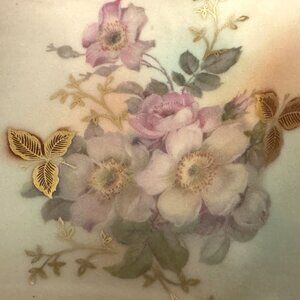 Antique Schumann Arzberg bowl is a beautiful addition to any collection. With a glossy finish and gold trim, it is perfect for all occasions. Measuring 5 inches across and 2 inches tall, it is a small bowl dish that is both elegant and functional. Featuring a painted backstamp and the Wild Rose product line, this original piece was made in Germany during the 1920-1929 time period. The bowl is made of porcelain and has a beautiful multicolor flower theme. Hand wash only is recommended for care instructions. No chips or cracks and the gold trim is intact. Beautiful piece.