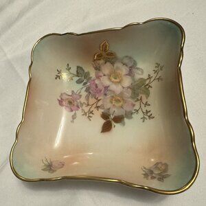 Vintage SCHUMANN ARZBERG Wild Rose Square Bowl Candy Trinket Dish Gold Trim