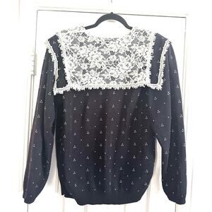 Vintage SCOTT MCCLINTOCK Lace Sailor Collar Navy Dotted Pattern Knit Sweater