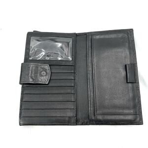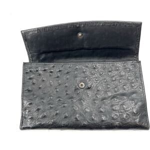 Vintage SCULLY Mens Black Ostrich Leather Breast Pocket Long Bi-Fold Wallet