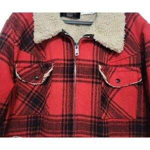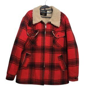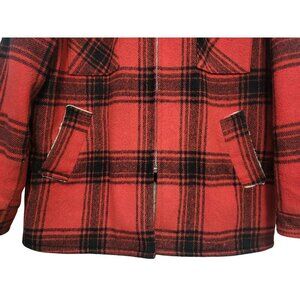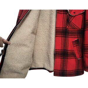 1960s 1970s Sears Western Plaid Chore Coat Buffalo Plaid Sherpa Barn Jacket