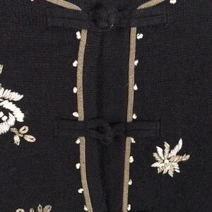 Vintage SEGUE Embellished Embroidered Black/Tan Cardigan Size M