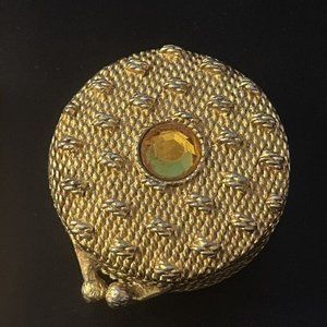 This vintage set of 3 compact gold tone cases by Houbigant, Ultima, and an unknown manufacturer is a must-have for collectors of vanity and perfume items. The elegant design and craftsmanship of these compacts make them a perfect addition to any vintage collection or as a decorative piece in a modern setting. The three cases come in different sizes, making them versatile for various uses, and the gold tone finish adds a touch of glamour to any dressing table. These collectibles from the 1950-1970 era are in excellent condition and have been well-preserved. The intricate designs on the exterior of the cases are still vivid and eye-catching, and the interior of each compact is clean and ready for use. This set of 3 compact gold tone cases is a treasure for vintage enthusiasts and a great gift for anyone who appreciates the beauty and craftsmanship of vintage items.