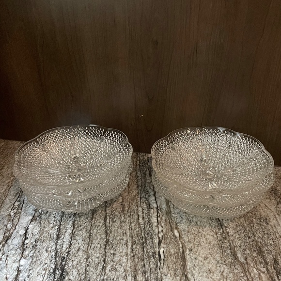 Vintage SET of 6 Clear Pressed Bubble Glass Dessert Condiment Bowls Anchor Hock