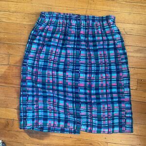 Fun funky jewel tone skirt with blues and pinks in a grid plaid pattern