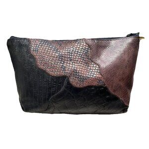 Vintage SHARIF Women's Brown Patchwork Leather & Reptile clutch purse handbag