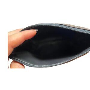 Brown leather & reptile clutch pouch by Sharif. 5 1/2 x 7".