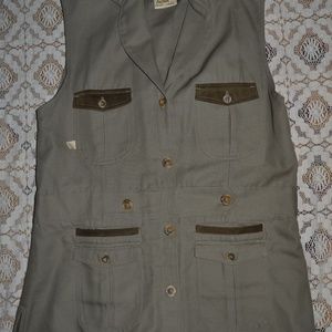 Like New! 100% Cotton. Suede Accents on shoulders-Pockets & back. She Safari. Size L . Color is Army Green with Dark Brown Suede Accents.