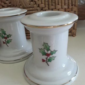 Vintage SHIBATA Fine Porcelain Christmas Candle Sticks